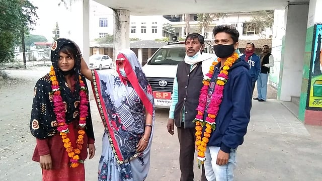 दतिया। मध्य प्रदेश दतिया जिले की भांडेर तहसील पण्डोखर थाना ग्राम कुतौली के निवासी ने बुधवार को एक प्रेमी जोड़ा दतिया पुलिस कार्यालय पर अपनी एसपी से मदद की गुहार लगाने पहुंचा। बालिका लड़का लड़की आपस में शादी करना चाहते थे, लेकिन लड़की के परिजन इस रिश्ते से तैयार नहीं थे। एसपी ने प्रेमी जोड़े की सहमति से उनकी मौके पर लड़के के माता उमा सिरोनिया और पिता दीनदयाल सिरोनिया ही के सामने एसपी ऑफिस के बाहर फूलों की माला पहनाकर सात जन्मों तक साथ निभाने का वादा किया। बता दें, अशोक और संध्या का प्यार महज सात साल पुराना है। बातचीत बढ़ी और दोनों एक-दूसरे को दिल दे बैठे। इसके बाद दोनों ने एक साथ जिंदगी बिताने का फैसला लिया। ग्राम चंद्रौल अशोक का गांव की युवती सांध्य से प्रेम प्रसंग चल रहा था। दोनों ही एक दूसरे से शादी करना चाहते थे, लेकिन लड़की के परिवार के लोग इस रिश्ते से तैयार नहीं थे।लड़का-लड़की ने इसकी शिकायत परिवार परामर्श पुलिस अधीक्षक से की। बुधवार को लड़के के परिजन एसपी आफिस में उपस्थित हुए।परिवार के लोगों को भी समझाया और पुलिस ऑफिस के बाहर लड़का-लड़की ने फूल माला पहनाकर विवाह की औपचारिकताएं पूरी कर ली। वही लड़के के माता-पिता ने लड़की लड़के को आशीर्वाद दिया।