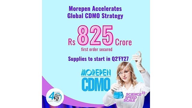 मोरेपेन लेबोरेटरीज लिमिटेड (NSE: MOREPENLAB; BSE: 500288) ने एक अग्रणी वैश्विक फार्मा कंपनी से लगभग ₹825 करोड़ (USD 91 मिलियन) का बहुवर्षीय कॉन्ट्रैक्ट डेवलपमेंट एंड मैन्युफैक्चरिंग ऑर्गनाइजेशन (CDMO) ऑर्डर हासिल किया है।