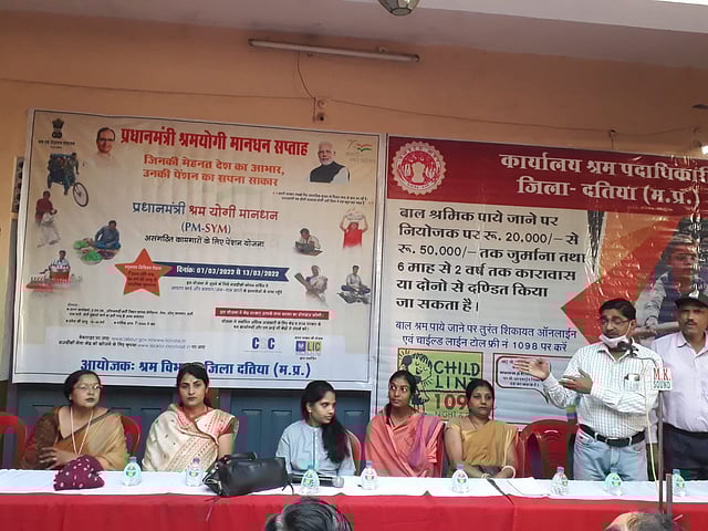 दतिया जिले को आज बाल श्रम मुक्त करने के लिए श्रम विभाग द्वारा टास्क फोर्स की समिति के साथ शहर के व्यापारी वर्ग की बैठक ली। शहर के समस्त संस्थानों पर बाल श्रमिकों को नियोजित न किया जाने हेतु शपथ दिलाई गई। व्यापारी वर्ग द्वारा वचन लिया गया कि न ही बाल श्रमिक नियोजित करेंगे और न ही किसी को करने देंगे।श्रम निरीक्षक निशा जहां द्वारा बताया गया कि बाल श्रम एक सामाजिक बुराई है तथा पीताम्बरा मां की धरती पर एक कलंक है। कार्यक्रम में बाल कल्याण समिति के सदस्य श्रीमती रश्मि कटारे ने बताया कि स्पॉन्सर स्कीम के तहत आर्थिक रूप से अशक्त ऐसे बालक बालिका जिनके अभिभावक नहीं है उनको आर्थिक सहायता दी जाएगी।