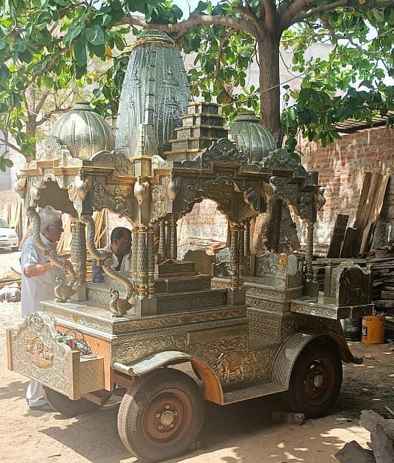 12 लाख 61 हजार की लागत से बनने वाले रथ को जो कारीगर तैयार कर रहे हैं। वह रथ बनाने का काम कई पीढ़ियों से कर रहे हैं। बैसे तो इसकी लागत बहुत ज्यादा होती लेकिन रथ बनाने वाले लोग भी मां पीताम्बरा के भक्त हैं, इसलिए उन्होंने सिर्फ रथ की लागत ही ली है। एक भव्य रथ तैयार हो रहा है। 6 फीट चौड़े, 11.6 फीट ऊंचे और लम्बे सुनहरे और सिल्वर कलर के भव्य रथ पर पीताम्बरा माई विराजमान होंगी।