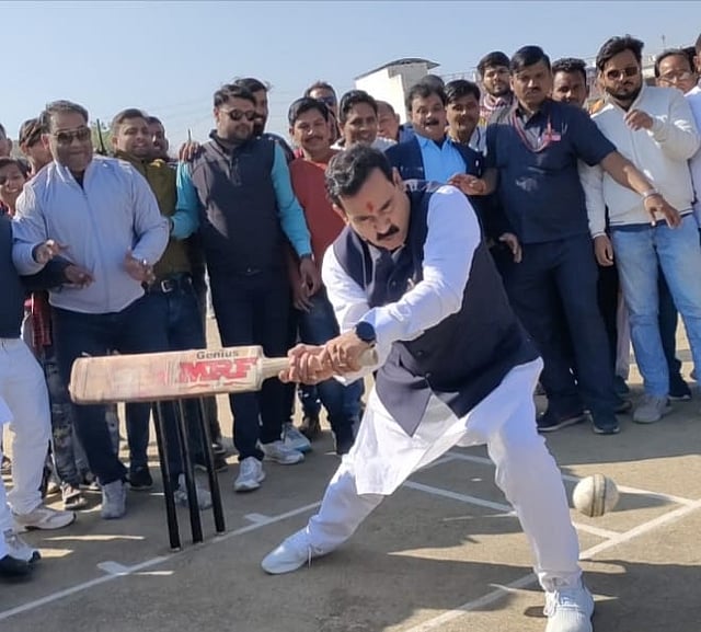दतिया। स्टेडियम ग्राउंड पर गृह मंत्री डॉ नरोत्तम मिश्रा ने टी 20 लीग क्रिकेट प्रतियोगिता का फीता काटकर उदघाटन किया। इस अवसर पर उन्होंने बल्लेबाजी कर कलेक्टर संजय कुमार की गेंदों पर जमकर शॉट लगाए।
