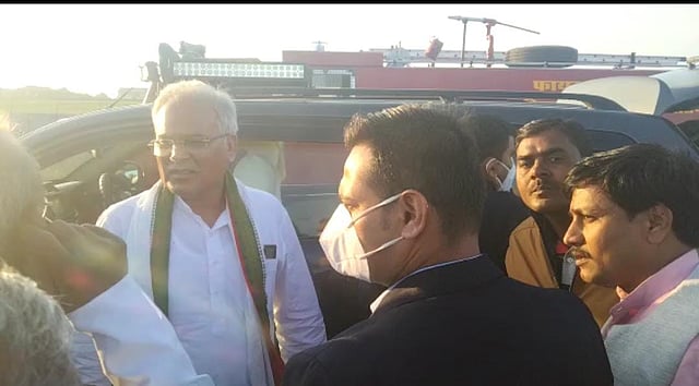 दतिया। छत्तीसगढ़ के मुख्यमंत्री भूपेश बघेल रविवार की शाम दतिया पहुंचे। एयरपोर्ट पर कांग्रेसियों ने स्वागत किया। वहीं सेवड़ा विधायक घनश्याम सिंह, कांग्रेस जिला अध्यक्ष अशोक दांगी वगदा, सेवड़ा विधायक घनश्याम सिंह, युवा नेता भानु ठाकुर सिंह सहित अन्य कार्यकर्ताओं ने मुख्यमंत्री की अगवानी की। तत्पश्चात मुख्यमंत्री भूपेश बघेल झांसी के लिए हुए रवाना। जहां कांग्रेस प्रत्याशी के लिए प्रचार करेंगे