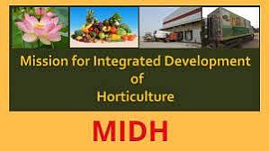 "एकीकृत बागवानी विकास मिशन" [MIDH} फलों, सब्जियों, जड़ व कन्द फसलों, मशरूम, मसाले, फूल, सुगंधित पौधों, नारियल, काजू, कोको और बांस इत्यादि उत्पादों के चौमुखी विकास की केंद्रीय वित्त पोषित योजना है।