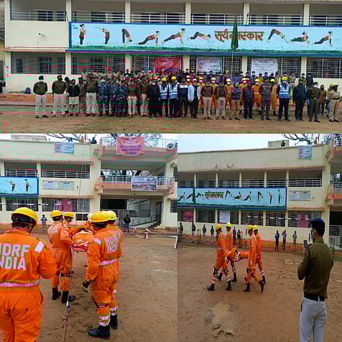 आयोजित मॉकड्रिल के दौरान अपर कलेक्टर श्री रूपेश उपाध्याय सहित आपदा प्रबंधक के जिला सलाहकार श्री सुनील गायकवाड़, होमगार्ड कमाण्ड़ेड श्री कमलनाथ धुर्वे, प्राचार्य श्री डीआर राहुल सहित महाविद्यालय के एनसीसी एवं एनएसस के प्रभारी तथा एनसीसी के कैटेड एवं एनएसएस, स्काउट गाईड एवं वांलेटियर आदि उपस्थित थे। पुलिस, राजस्व, स्वास्थ्य, नगरीय निकाय, अग्नि शमन, मीडियाकर्मी, एनजीओ आदि उपस्थित थे।कमाण्ड़ेर श्री मनोज शर्मा के दिशा निर्देशन में एनडीआरएफ वराणसी की 11 सदस्यीय दल ने विभिन्न एजेसिंयो सेे समन्वय स्थापित का संयुक्त मॉक अभ्यास का आयोजन किया गया। डिप्टी कमाण्ड़ेड श्री अभिषेक कुमार राय की अगुवाई मे शासकीय स्नातकोत्तर महाविद्यालय दतिया में एनडीआरएफ की टीम द्वारा जिला आपदा प्रबंधन अभिकरण और अन्य विभागांे के सहयोग से भूकंप से बचाव एवं भूकंप उपरांत राहत कार्यो पर एक संयुक्त मॉक अभ्यास का आयोजन किया किया गया। महाविद्यालय की एक इमारत को मॉकड्रिल के रूप में उपयोग कर उसे भूकंप से ढ़ह जाना बताते हुए उसमें फसे कर्मचारियों और छात्रों का मॉकड्रिल कर सुरक्षित निकालने की कार्यवाही की। मॉकड्रिल के दौरान टीम ने रेस्क्यू ऑपरेशन कर कटिंग उपकरणों के माध्यम से ढ़क गई इमारत को कटिंग कर गंभीर रूप से फसे पीड़ितों को बाहर निकाला। इस प्रकार दूसरी मंजिल में फसे अन्य पीड़ितों रॉप रेस्क्यू तकनीक से सुरक्षित निकालकर पीड़ितों को मेडीकल एजेंसी द्वारा प्राथमिक उपचार देने के उपरांत अस्पताल पहुंचाया।