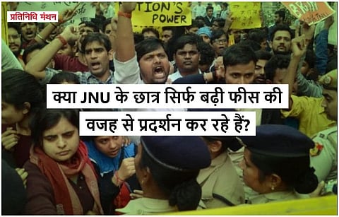 होसकता है, कि देशभर से राजनीतिक फायदा लेने के लिए, किसी प्रचंड राजनीतिज्ञ के दिमागसे यह ख्याल निकला हो। यह एक अखंड सत्य है, कि देशभर में जेएनयू को साम्यवादियों(Communists)के गढ़ के रूप में चित्रित किया जाता है और यह बात कहीं न कहीं सच भी है। देश के कईहिंदूवादी संगठन और हिंदूवादी विचारधारा रखने वाले के लोग साम्यवाद के धुरविरोधी हैं।हो सकता है इन्हीं लोगों को लुभाने के लिए इस फीस में वृद्धि की गई हो, क्योंकि यहजिसके भी दिमाग की उपज है उसको यह भी पता था, कि इस फीस वृद्धि का जमकर विरोध होगा।अपने आचरण अनुसार, जेएनयू के छात्र सड़कों पर उतर आएंगे और पूरे देश के हिंदूवादी विचारधारावाले लोग इस बढ़ोत्तरी का समर्थन करते हुए प्रशासन के साथ प्रतिबद्धता से खड़े हो जायेंगे।अंदरूनी रूप से देशभर के राइट विंग के लोगों का समर्थन सरकार के साथ और गहरा होने कीप्रबल संभावनाएं हैं। अब बात आती है आंदोलनकरियों की, तो अगर ये प्रदर्शन साम्यवादीपार्टियों के निर्देशन से हो रहा है, तो यह आपको सोचना है, कि अंत में राजनीतिक रूपसे आखिर फायदा किसको होगा।