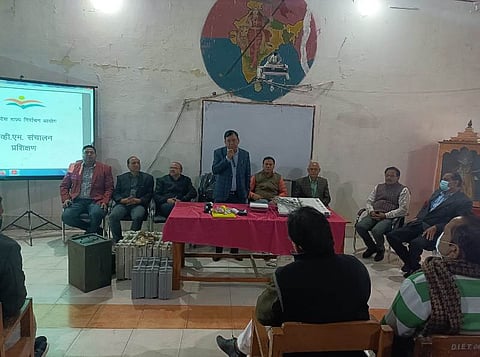 दतिया , 20 दिसम्बर 2021/ त्रि-स्तरीय पंचायतों के आम निर्वाचन 2021-22 हेतु राज्य निर्वाचन आयोग द्वारा नियुक्त निर्वाचन प्रेक्षक श्री विजय अग्रवाल ने रविवार को मतदान दल के सदस्यों को प्रदान किये जाने वाले मास्टर ट्रेनर्स के प्रशिक्षण का निरीक्षण कर मास्टर ट्रेनर्स को आवश्यक दिशा निर्देश दिए। इस दौरान जिला पंचायत के मुख्य कार्यपालन अधिकारी एवं उपजिला निर्वाचन अधिकारी श्री कमलेश भार्गव, अपर कलेक्टर श्री रूपेश उपाध्याय एवं मास्टर ट्रेनर्स आदि उपस्थित थे।